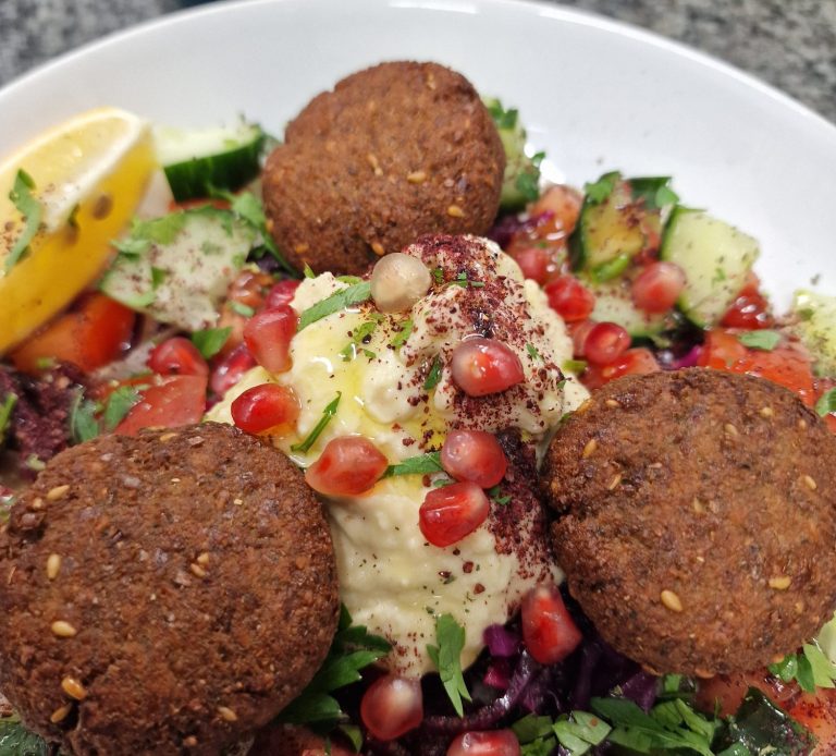 Falafel & Hummus Vg Ss Chickpeas, lemon juice, garlic, cumin, tahini & olive oil, and chickpea & falafels